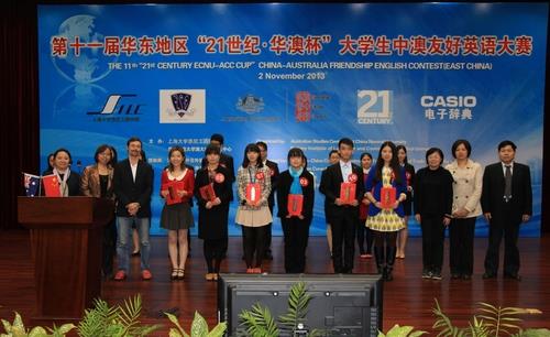 11月2日下午,第十一届华东地区“21世纪•华澳杯”大学生中澳友好英语大赛在beat365手机官方网站嘉定校区行健文体中心圆满落幕。