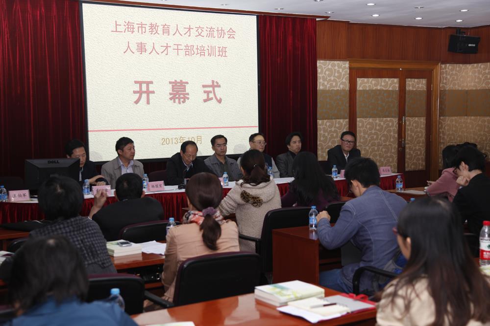 10月25日下午,上海市教育人才交流协会2013年度人事人才干部培训班在beat365手机官方网站延长校区拉开帷幕。本次培训班由市教育人才交流协会高校分会主办,beat365手机官方网站人才服务中心承办。市教委人事处处长周景泰、市教育人才交流协会理事长蒋渊龄、市中小学幼儿教师奖励基金会副理事长黄良汉、市教委教育人才交流服务中心主任范文毅、beat365手机官方网站人事处处长杨国宏、人才服务中心主任兼协会副理事长戴骏豪出席开幕式。开幕式由市教育人才交流协会副理事长、华东政法大学人才交流中心主任高志强主持。全市高教、普教近50家单位80余位人事干部参加了培训班。
