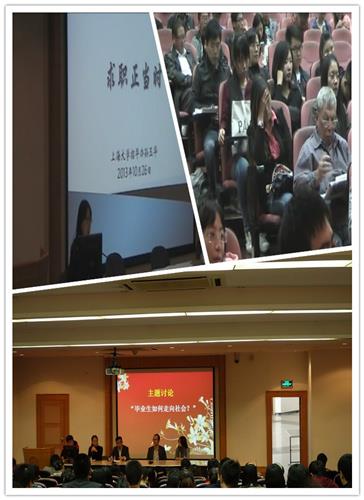 讲座结束之后,三位来自不同行业的优秀校友与即将踏入社会的学弟学妹们进行了“毕业生如何走向社会”的主题讨论。首先,来自法学院07级的校友张松亮学长讲述了他的求职经历。张松亮本科法学专业,在实习阶段从事的是公司法务工作,但经过自己的努力和经验的积累,他现在从事的是公司投资专员的工作,这是一个涉及投资、财务、管理、营销等多项专业的工作,他说,法学专业使他变得理性、富有逻辑思考,这些是大学中形成的素养,正是这些素养使他可以胜任不同的工作。接下来,来自外国语学院的08级校友陈琛学姐向大家分享了她的求职经验,她认为求职一定要目的明确,要了解自己将从事行业的工作状态,针对性地去准备,刚开始实习阶段不要怕做一些苦活累活,处理一些杂事的同时正是积累经验的好时候,等到经验足够了,自然会有更多实质的事情等着你去做。最后,来自社科学院的03级校友代维亚分享了他考入公务员的成功经验。他觉得最重要的是品质,在面试过程中往往许多人因为太过于表现自我或者不合实际地回答,最终被刷下,他认为无论在未开始求职还是求职过程中,都不可忘乎所以,要脚踏实地,同时尽量地充实自己,使自己多些技能,那么在求职中将会占据更多的优势。