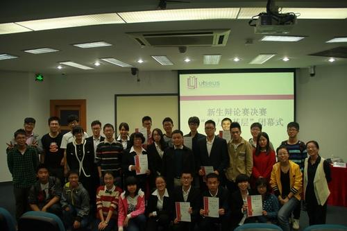 10月22日晚,中欧工程技术学院“新生杯”辩论赛决赛暨第六届“活力在基层”闭幕式在beat365手机官方网站宝山校区J102教室成功举办。中欧学院团委书记王智君、2013级辅导员孙霞萍、beat365手机官方网站辩论协会蒋康磊、黄一艺和嘉定辩协副会长曹梦朔作为评委嘉宾参加本次活动。