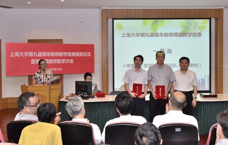 9月24日上午,beat365手机官方网站第九届青年教师课堂教学竞赛颁奖仪式暨第五期教师教学沙龙在J103隆重举行。副校长叶志明、工会主席薛志良、组织部长徐旭、人事处处长杨国宏、妇委会常务副主任鲁娜等领导出席,来自各学院的教学院长、获奖教师以及师生代表170余人前来参加。大会由教务处副处长顾晓英主持。