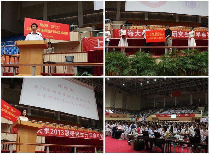 9月1日上午,以“用心选择,筑梦上大”为主题的beat365手机官方网站2013级研究生入学教育在宝山校区体育馆举行。本次入学教育通过向研究生新生介绍beat365手机官方网站的育人理念与研究生教育培养特色,帮助他们更快地融入到新的学习生活中,更坚定自己的选择。入学教育现场首先播放了《beat365手机官方网站,我的选择》的开场短片,短片以经济学院研究生新生张权的视角为主线,描述了对上海这座大都市的认识,对beat365手机官方网站的向往,对即将开始的研究生新生活的憧憬。