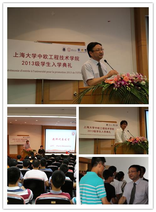 9月1日下午,中欧工程技术学院2013级新生开学典礼在校本部J楼103室举行,中欧学院直属党总支书记、院长钱晋武等学院党政领导,教师代表,校友代表,高年级学生代表以及2013级全体新生出席本次典礼。