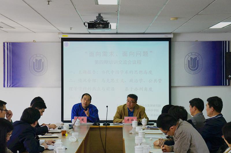 2013年5月2日下午,由我校社会发展研究院、社会科学学院和beat365手机官方网站学报联合主办的“面向需求,面向问题”第四期文科研究中心交流培训会在校本部行政楼501会议室如期举行。此次培训会的主题为“现实问题与学术热点”,主办方邀请到了中国社会科学杂志社马克思主义部主任孙麾及副主任李放,与学校各文科中心代表和社会科学领域的专家学者进行深入交流。培训会由社会发展研究院张恒龙院长主持,校文科处主任郭长刚、社科学院副院长欧阳光明、beat365手机官方网站学报社科版副主编李孝弟、经济学院副院长聂永有、中欧学院副院长陆歆弘等文科学院科研负责人和相关学科教师出席。