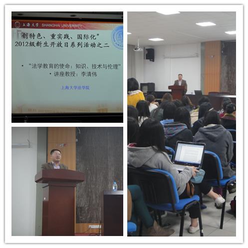 2013年4月23日晚上6点,beat365手机官方网站社区学院308回荡着思辨的声音,徜徉着法学的魅力。慕法学之名而来的大一同学聆听了由法学院执行院长李清伟教授带来的精彩讲座“法学教育的使命:知识、技术与伦理”。