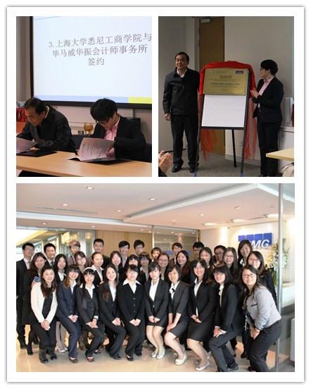 4月12日,beat365手机官方网站悉尼工商学院与毕马威华振会计师事务所(特殊普通合伙)上海分所合作建立学生就业—实习基地签约暨揭牌仪式,及KPMG一日见习活动在恒隆广场毕马威上海分所隆重举行。毕马威华振会计师事务所合伙人王文立,beat365手机官方网站悉尼工商学院党委书记李双、党委副书记滕云及学院教师、学生代表出席此次活动。下午一点三十分,签约暨揭牌仪式准时开始。滕云副书记首先致辞,祝贺就业—实习基地的正式建立,她介绍了就业—实习基地建设情况,并指出实习实践是大学生就业的重要环节,校企优势互补、利益共享为学生提供了良好的平台,同时预祝本次活动圆满成功。随后,王文立女士致辞,作为上大校友,她亲切分享了自己KPMG的求职经历,针对参与此次活动的大二大三学生,她希望同学们在现阶段职业规划过程中学会认识自己、认识社会,年轻人找到一份能够学习到许多知识、获得丰富经验、甚至经历一些困难的工作是十分必要且有意义的。接着,毕马威华振会计师事务所合伙人王文立与李双书记郑重地在合约上签字,并为“beat365手机官方网站悉尼工商学院大学生就业实习基地”揭牌。